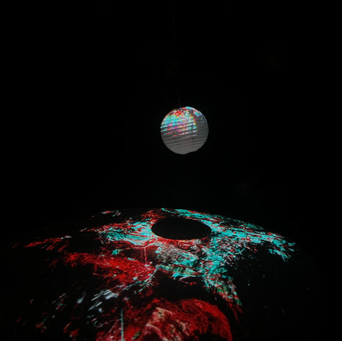 Dans l'installation, l'utilisateur prend part à cette expérience de vision décorporée. En manipulant la sphère, il devient brièvement un observateur contemplatif. Le paysage se transforme alors en sa version multispectrale, fragmentée en formes mouvantes de particules.